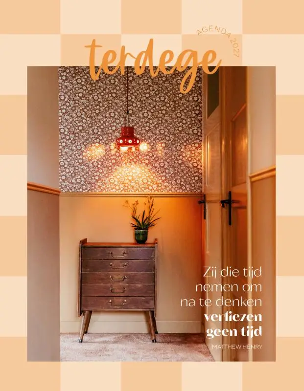 De Terdege-agenda is een agenda die je voor je pleziergebruikt en graag op tafel legt! Want hoe handigeen digitale agenda ook is, er gaat niets boven eenmooi papieren exemplaar. De Terdege agenda 2027is handig in gebruik. Op elke rechterpagina staat eenweekoverzicht, links is er ruimte om notities of handigeto-do-lijstjes te maken. De vormgeving is frisen puur. Er zijn prachtige foto's, mooi vormgegevenBijbelteksten en inspirerende spreuken in te vinden.Dat alles maakt de Terdege-agenda tot een fijne agendadie je graag wilt gebruiken!De week begint op zondag.